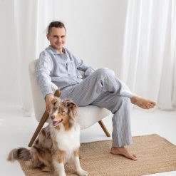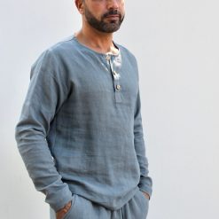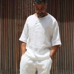 Men’s Linen Two Piece Set Shirt & Pants, Natural Linen Clothing, Handmade with French Seams