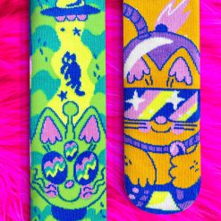 Lunar & Tick Mismatched Psychedelic Space Cats Socks Pinkgabbercat Series