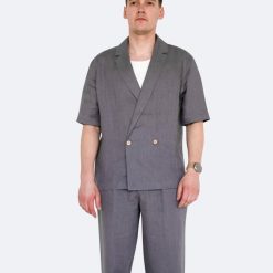 Linen Clothing Set – Double Breast Shirt & Wide Leg Linen Pants – Relaxed Fit Two Piece Suit Men – Casual Linen Outfit
