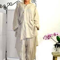 LINEN set for Men: stand up collar shirt, tapered pants. Men’s Linen Vacation Suit, Undyed Linen Suit Men, Mens Organic flax Shirt and Pants