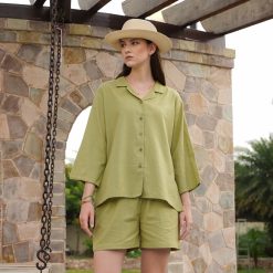 Linen Two Piece Set | Co-ord Set in 40 colors | Casual Shirt and shorts | Cuban Collar Resort Shirt | Linen Cotton Relaxed Blouse Set