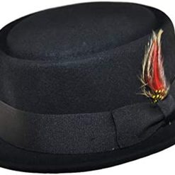 Mens Unisex Handmade 100% Wool Crushable Pork Pie Hat with Removable Feather and Side pin