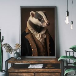 Badger Vintage Portrait, Renaissance Animal Painting, Altered Art Print, Animal Head Human Body, Cool Home Decor