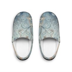 Winter Bloom Cozy Indoor Slippers for Women with Elegant Floral Design, Women’s Indoor Slippers