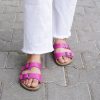 Women Double Strap & ,Buckle Barefoot Sandals SMOOTH FUSCIA Leather Handmade Zero Drop, Slipper